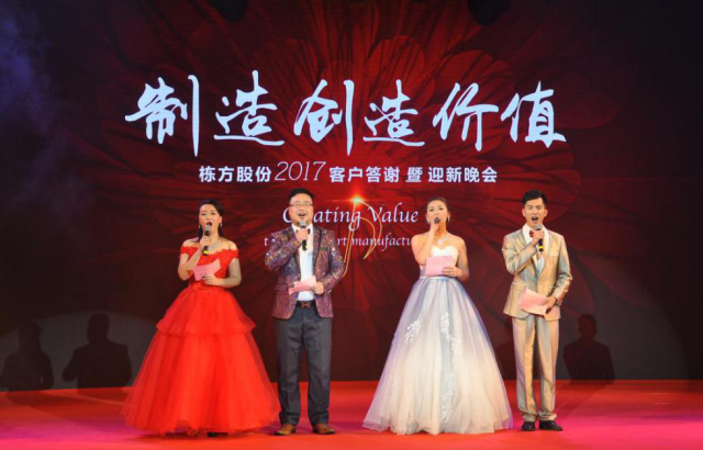 在接近晚上11點鐘,整個晚會才戀戀不舍地在棟方廠歌《美麗征程》中落下帷幕,至此2017棟方股份客戶答謝暨迎新晚會取得圓滿成功。2017注定是不平凡的一年,實現(xiàn)飛躍的一年,棟方人將以全新的風(fēng)貌,踏上新的征程!“制造創(chuàng)造價值”,我們信心滿懷,用熱忱與堅韌,用真情與汗水,用激情與夢想,書寫新的華章,跨越騰飛!