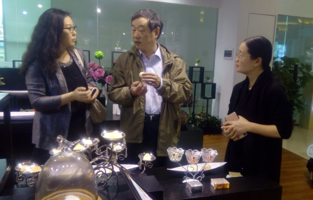 2017年2月22日,中國香料香精化妝品工業(yè)協(xié)會(huì)理事長陳少軍先生、中國香料香精化妝品工業(yè)協(xié)會(huì)項(xiàng)目合作部副主任王婷婷女士,蒞臨棟方股份考察交流。棟方股份董事長唐新明、技術(shù)顧問曾颯博士、技術(shù)研究部高合意工程師陪同參觀。