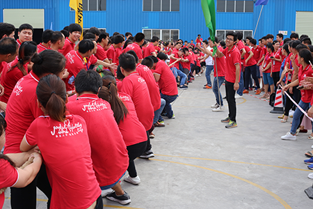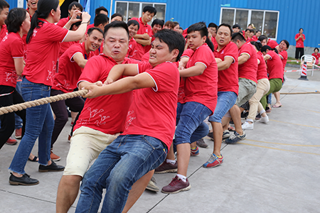 活動現(xiàn)場,沒有參加比賽的員工自發(fā)組成啦啦隊,在旁邊齊聲吶喊,為己方隊員加油助陣。最終,氣勢強(qiáng)勁的“二車間&倉儲聯(lián)隊”獲得冠軍,“飛翔隊”獲得亞軍,辦公室“玩美隊”獲得季軍。