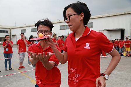 第二輪:協(xié)作接力賽,分鏈接加速、袋鼠跳、平衡乒乓球過障礙和無敵風(fēng)火輪4個接力小環(huán)節(jié)。一聲令下,參賽員工魚貫而出。場上,你追我趕、奮力拼搏;場下,加油聲、吶喊聲此起彼伏。這項(xiàng)活動不只讓員工們的身心得到放松,還令他們的團(tuán)隊協(xié)作力、集體榮譽(yù)感得到前所未有的提高。