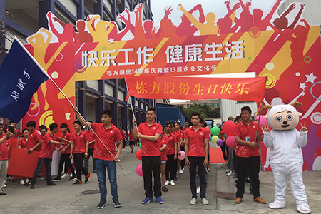 ?6月伊始,晴,整潔開闊的籃球場上,不時吹來習(xí)習(xí)微風(fēng)。全體棟方人齊聚于此,心潮澎湃、期盼滿懷,靜候著一場盛會的到來。下午3:00,以“快樂工作,健康生活”為主題的棟方股份第十三屆企業(yè)文化節(jié)暨十四周年廠慶,在精彩紛呈的“Cosplay”大型創(chuàng)意入場儀式中正式拉開序幕。