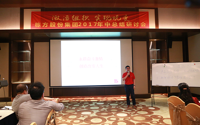 2017年7月30日至31日,“激活組織、實(shí)現(xiàn)蛻變、重寫未來——棟方股份集團(tuán)2017年中總結(jié)研討會(huì)”在廣州白水寨嘉華溫泉酒店順利召開。棟方股份集團(tuán)董事長(zhǎng)唐新明先生、集團(tuán)產(chǎn)業(yè)鏈投資管理公司總經(jīng)理方珉先生、公司高層領(lǐng)導(dǎo)、各子公司領(lǐng)導(dǎo),以及公司中層管理人員悉數(shù)出席會(huì)議。上午9時(shí)會(huì)議正式開始,本次研討會(huì)由人事行政中心副總監(jiān)周金桃主持,棟方股份集團(tuán)董事長(zhǎng)唐新明先生作開場(chǎng)致辭。