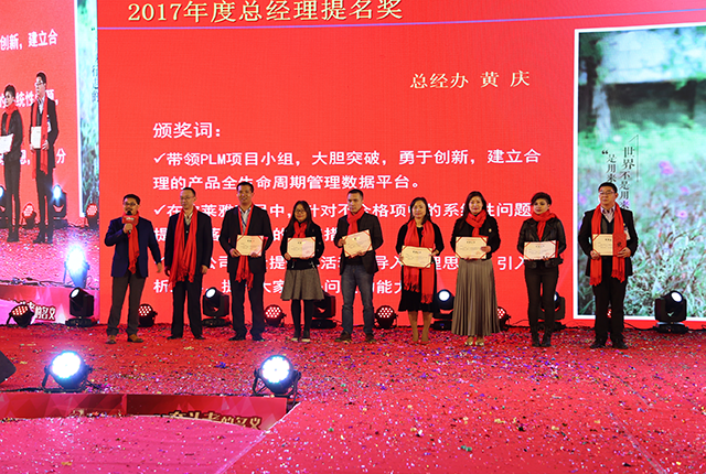 正如唐董所言,2017是不平凡的一年!過(guò)去的一年,公司除成功達(dá)成重大項(xiàng)目之外,還涌現(xiàn)了大批優(yōu)秀的團(tuán)隊(duì)、個(gè)人。為感謝他們?cè)诟髯詬徫簧细吨T的努力,公司依次頒發(fā)了優(yōu)秀項(xiàng)目獎(jiǎng)、優(yōu)秀團(tuán)隊(duì)獎(jiǎng)、明日之星獎(jiǎng)、棟方風(fēng)范獎(jiǎng)、總經(jīng)理提名獎(jiǎng)、十年忠誠(chéng)獎(jiǎng)等十三個(gè)獎(jiǎng)項(xiàng),共計(jì)4大項(xiàng)目、5個(gè)團(tuán)隊(duì)與137名個(gè)人在此次年會(huì)上受到表彰。