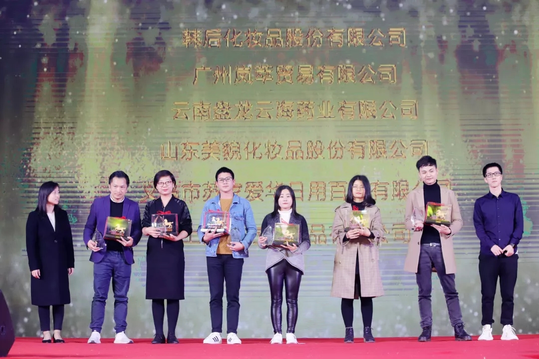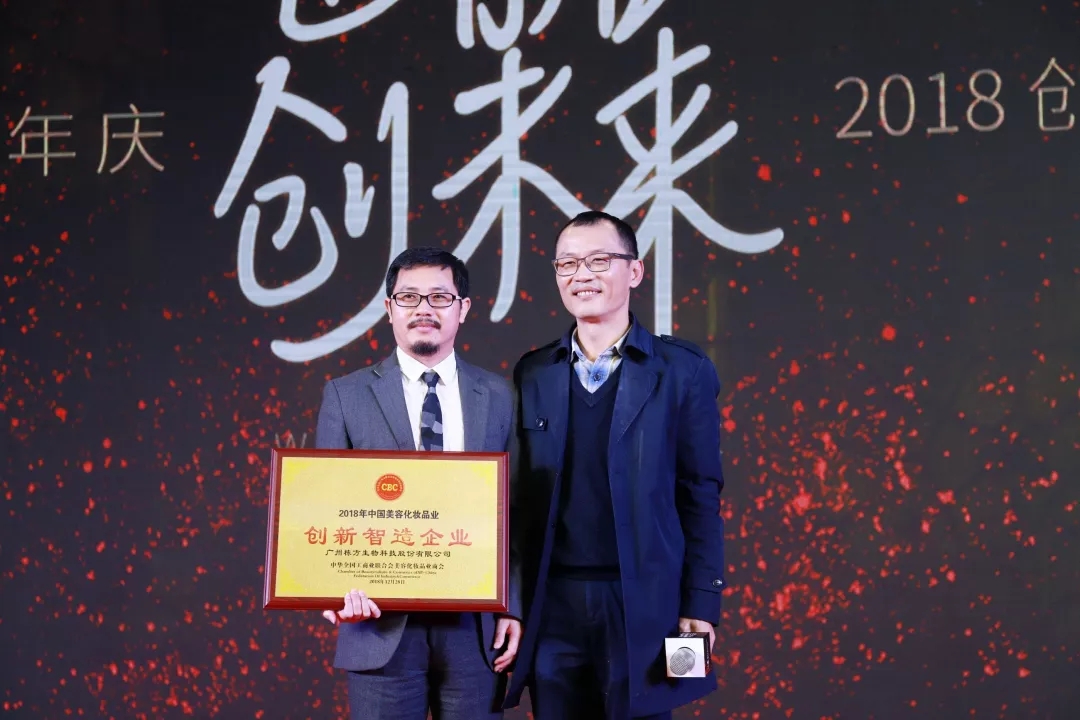隨后,青島金王總經(jīng)理唐風(fēng)杰先生,中國美妝總經(jīng)理桂紹元先生、中華全國工商聯(lián)合會美容化妝品業(yè)商會蔡永忠副會長先后上臺致辭,對棟方股份集團(tuán)近幾年的卓著成就給予高度肯定,對行業(yè)發(fā)展發(fā)表了頗有見地的分享。蔡永忠副會長代表中華全國工商聯(lián)合會美容化妝品業(yè)商會給棟方股份集團(tuán)20周年帶來了一份驚喜的生日禮物,為棟方股份頒發(fā)了“創(chuàng)新智造企業(yè)”大獎,回顧棟方股份2018年的累累碩果,這一榮譽(yù),實(shí)至名歸。
