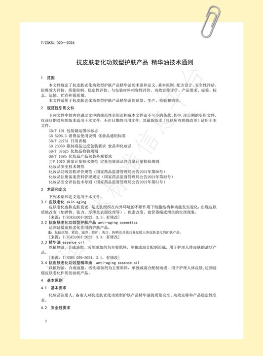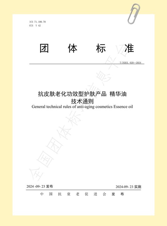 近日,由中國抗衰老促進會歸口管理、棟方股份參與起草的國內(nèi)首部《抗皮膚老化功效型護膚產(chǎn)品 精華油技術(shù)通則》團體標準(T/ZGKSL 020—2024)正式發(fā)布。